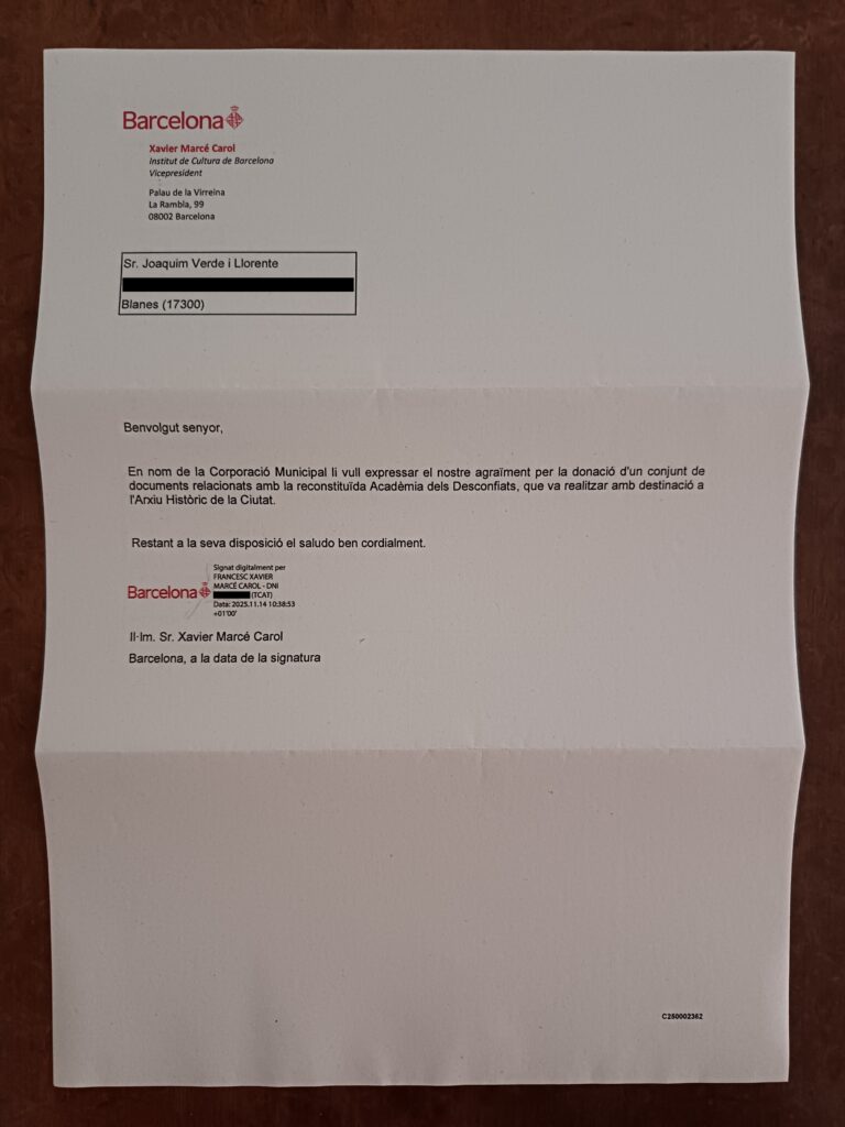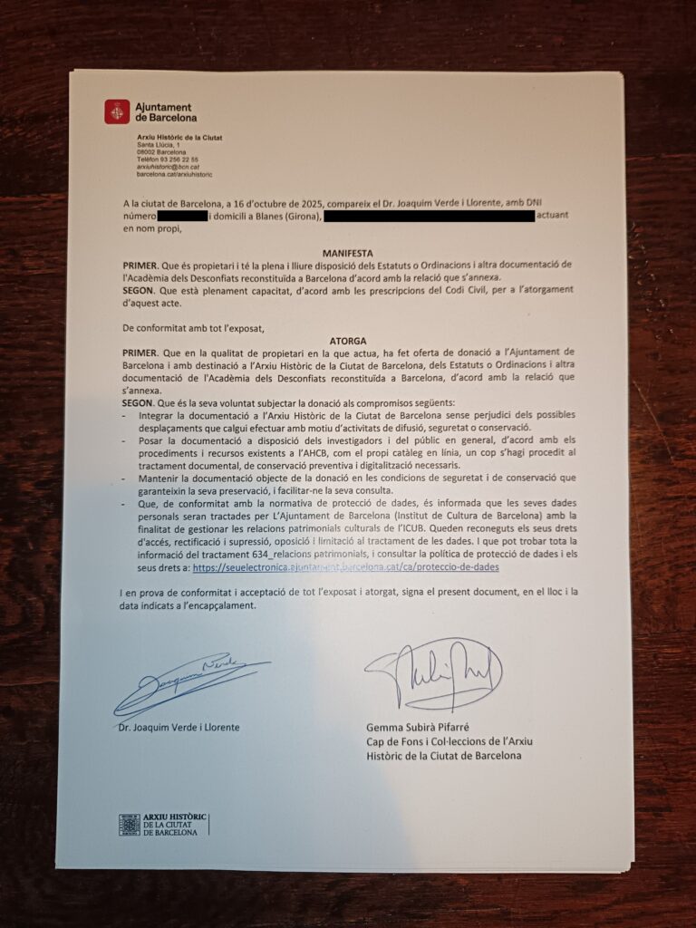 Donació de la documentació comuna de la reconstitució a l’Arxiu Històric de la Ciutat de Barcelona